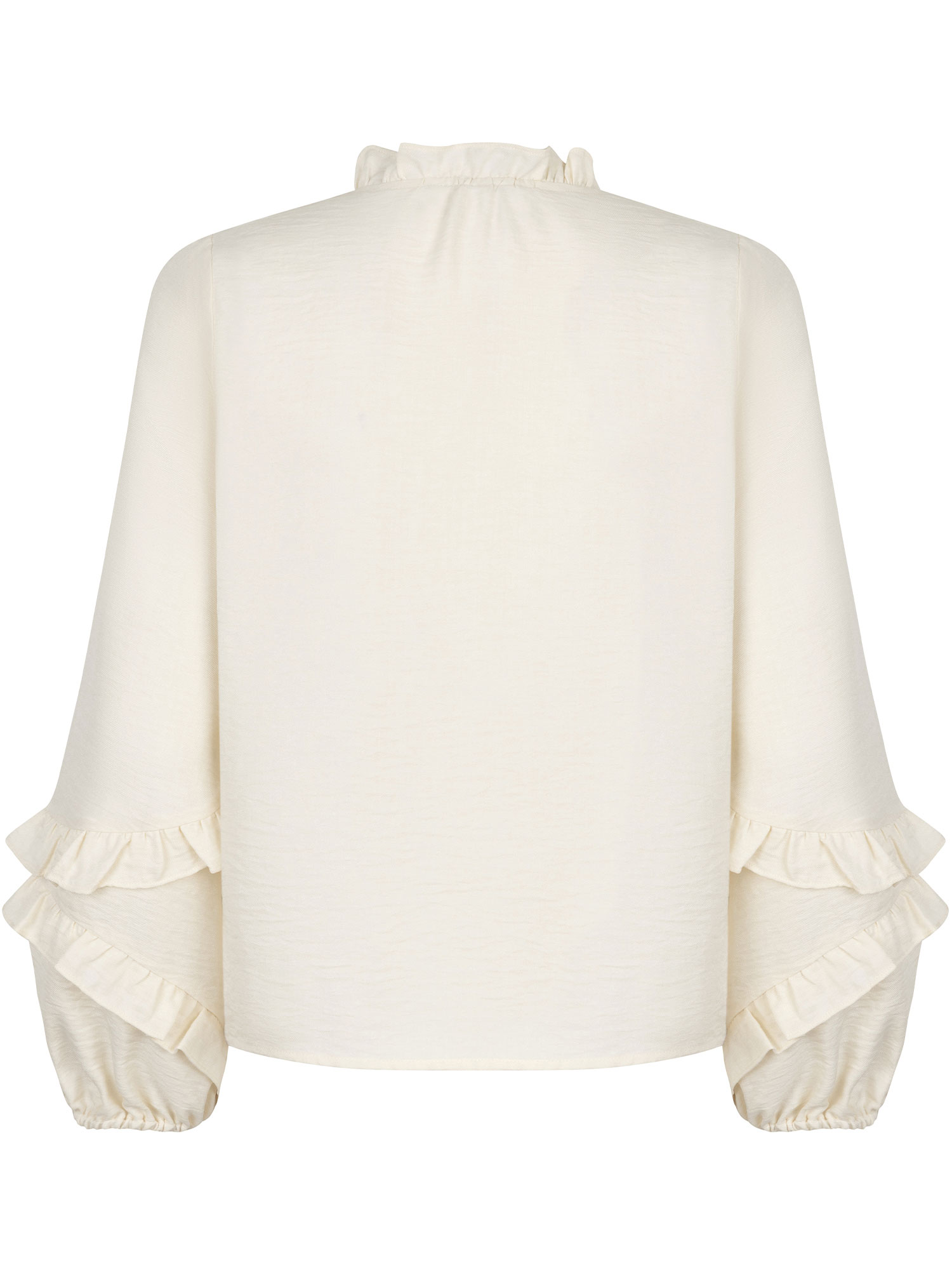 Blouse Jacky is een romantische en elegante blouse met verfijnde details. Deze blouse heeft een losse pasvorm met een subtiel opstaand ruffle kraagje en een halve knoopsluiting aan de voorkant. De lange mouwen zijn afgewerkt met dubbele ruches, wat zorgt voor een speelse en vrouwelijke touch. Dankzij de lichte stof draagt Jacky comfortabel en stijlvol, geschikt voor elke gelegenheid. De totale lengte van blouse Jacky is 60,5 cm met een mouwlengte van 61 cm bij een maat S.